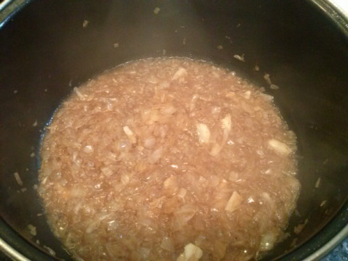 Pochar la cebolla y el ajo a fuego lento hasta que la cebolla esté transparente.