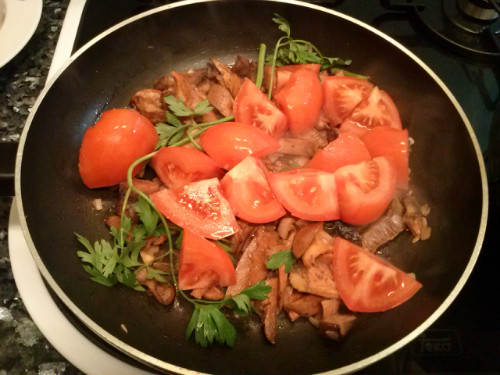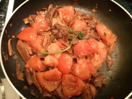 Chafar los tomates durante la cocción para suelten un poco de zumo.