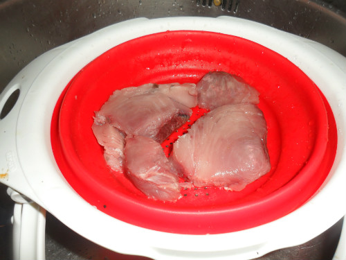 una vez que se ha quitado la piel y espinas, lavar bien el pescado y escurrirlo