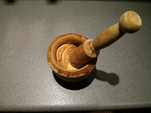 Si tienes picadora/batidora triturar los 200gr de galletas y reservar en un cuenco grande. Para los que no tengáis picadora utilizar el clásico mortero echando cada vez 3 ó 4 galletas (dependiendo del tamaño del mismo).