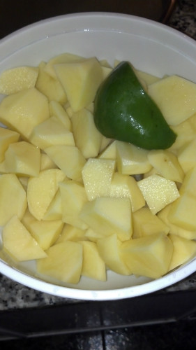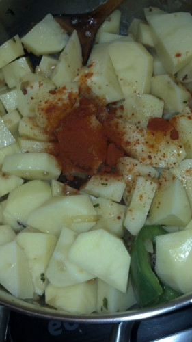 mientras dora la cebolla ,pelar y picar las patatas y el pimiento