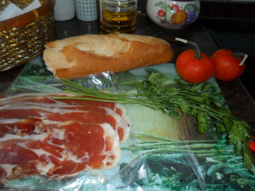 el pan puede ser sobrante del día anterior, lavar los tomates y secarlos