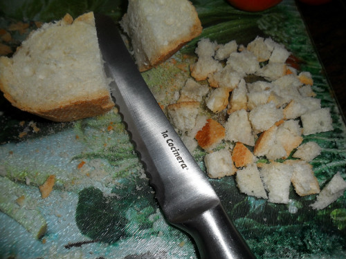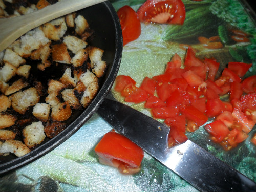 mientras se tuesta el pan, trocear el tomate en trocitos pequeños
