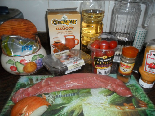 Preparación de solomillo de cerdo con tomates cherry: