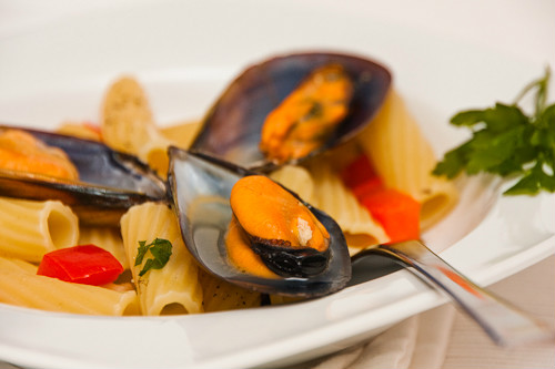 AGREGA EL VINO BLANCO E INCORPORA LOS MEJILLOS TAPA LA CAZUELAY PROSIGUE LA COCION A FUEGO VIVO HASTA QUE SE ABRAN DEJA QUE TEMPLEN UN POCO RETIRA LA VALVA VACIA Y ELIMINA LOS MEJILLONES QUE PERMANEZCAN CERRADOS