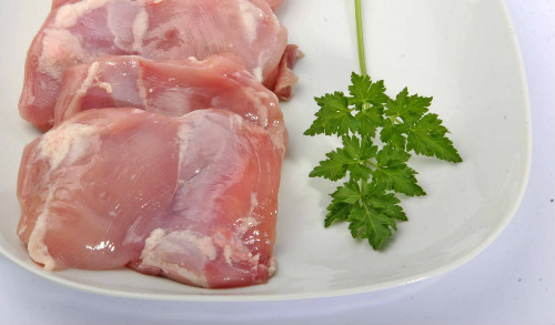 LAVA LOS CONTRAMUSLOS, SECALOS CON PAPEL DE COCINA Y APLASTALOS CO EL RODILLO, SALPIMIENTALOS Y REPARTE EL PUERRO SOBRE ELLOS, PON ENCIMA DE CADA UNO ½ PIMIENTO CORTADO A LO LARGO Y ENROLLALOS