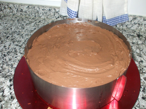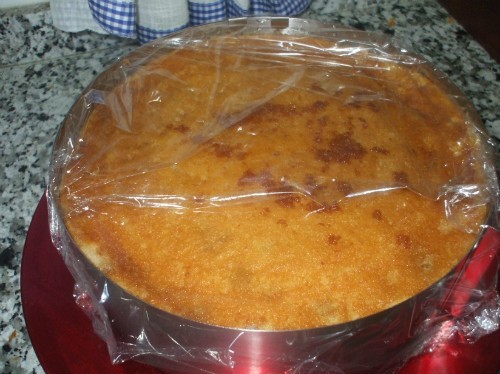 Ponemos el ultimo disco de bizcocho y lo calamos, tapamos la tarta y la metemos al frigo unas cuantas horas, mejor de un día para otro.