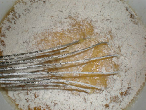 Por último se añaden la harina y la levadura, y se bate hasta que la mezcla sea homogénea.