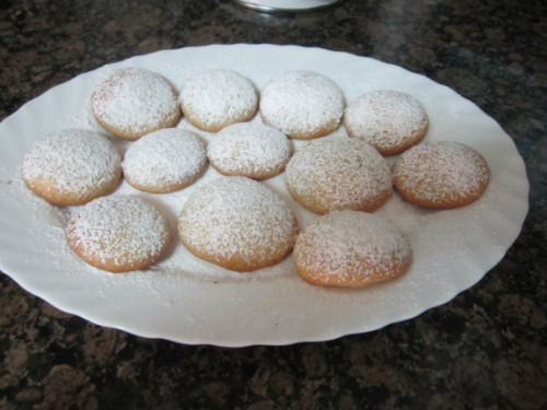 Cuando veais que suben y se ponen doraditas ,las sacais, las dejais enfriar, y las espolvoreais de azucar glass .