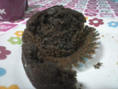 Unimos las dos mezclas mediante movimientos suaves y envolventes. Una vez bien mezclado ponemos masa en las cápsulas y horneamos a 175ºC. Primero calor solo abajo (5-7 minutos) y luego calor arriba y abajo hasta completar 12-15 minutos.