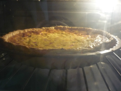 Cuando la verdura ya está, ponerla en un bol, con los huevos, la nata, el jamón cortado pequeño y 1/2 sobre del queso rallado, sal y pimienta.