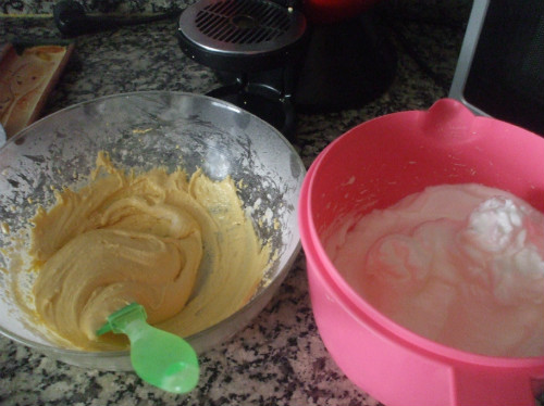 Separamos las claras de las yemas, montamos las claras a punto de nieve.