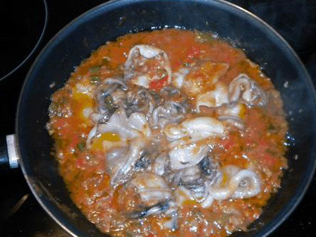 Limpiamos bien los chipirones por fuera y por dentro. No tirar las aletas, ni los tentáculos. Reservar.