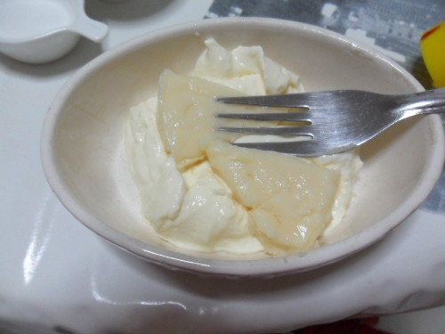 en un bol, mezclar la mahonesa con los quesitos, aplastarlos con el tenedor y dividir la masa en tres platitos