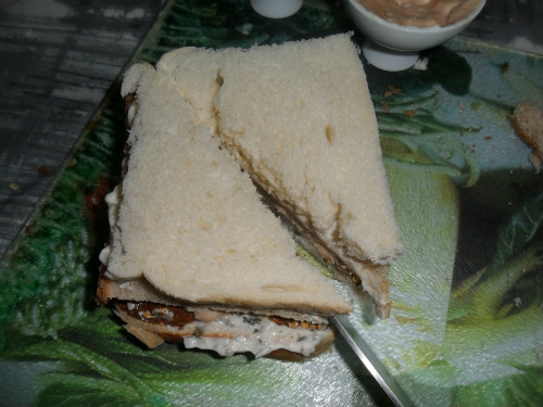 sobre la tabla ir untando las diferentes salsas en las rebanadas de pan de molde