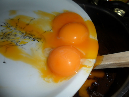 mezclar con las yemas de huevo de una en una y suavemente