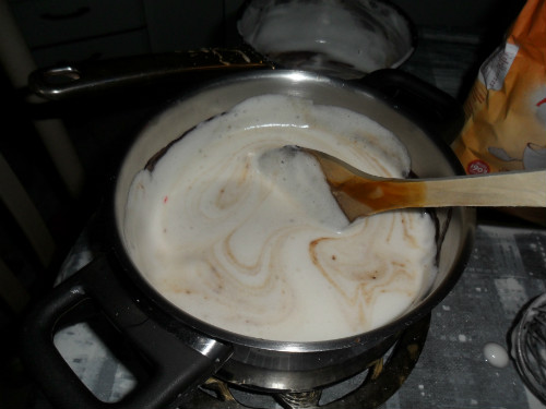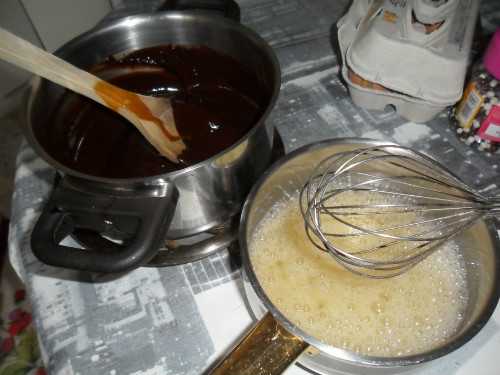 sacar del fuego y mientras se templa batir las claras a punto de nieve