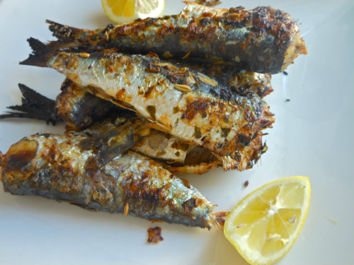 SIRVE LAS SARDINAS BIEN CALIENTE ACOMPAÑADAS CON UNA BANDEJA DE PATATAS ASADAS