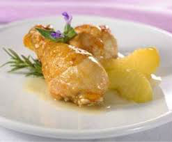 PELA LAS MANZANAS RETIRA EL CORAZON TROCEALAS Y REGALAS CON EL ZUMO DEL LIMON COLOCALA EN UN CAZO CON MEDIO VASO DE AGUA Y AZUCAR CUECELO A FUEGO SUAVE UNOS 10 MINUTOS AÑADE LA CANELA Y CONTINUA LA COCCION HASTA QUE ESTEN TIERNAS SIRVE LA CONPOTA DE MANZANA CON EL POLLO