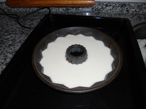 Con la batidora battimos las yemas y los huevos enteros, bamos añadiendo el almibar poco a poco sin dejan de batir, caramelizamos el molde que ballamos a husar.