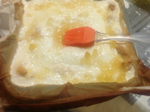 Preparación de pastel de queso fresco con mermelada de manzana: