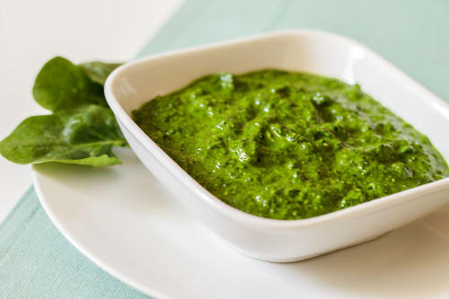 1. Triturar la albahaca, los ajos y los piñones en la batidora hasta conseguir una pasta homogénea.