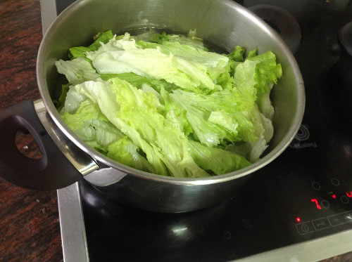 añadir la lechuga y tenerla cociendo 5 minutos más junto a la patata