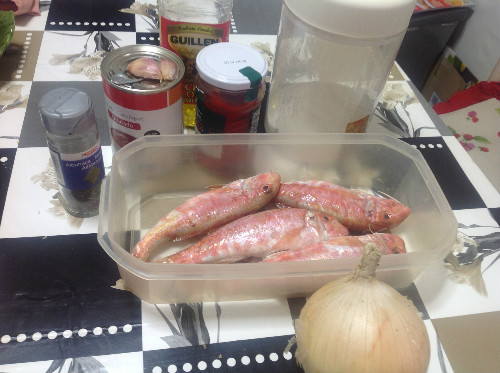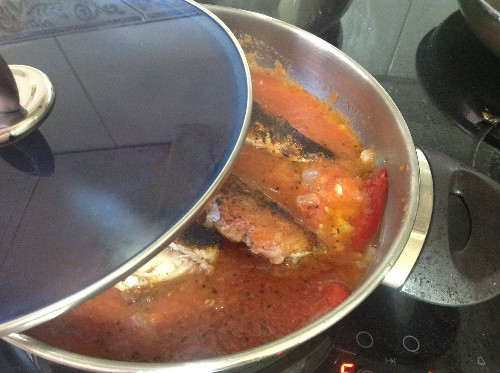 cuando empieza a hervir se le ponen los salmonetes encima y se tapa, y se cuece todo junto 15 minutos