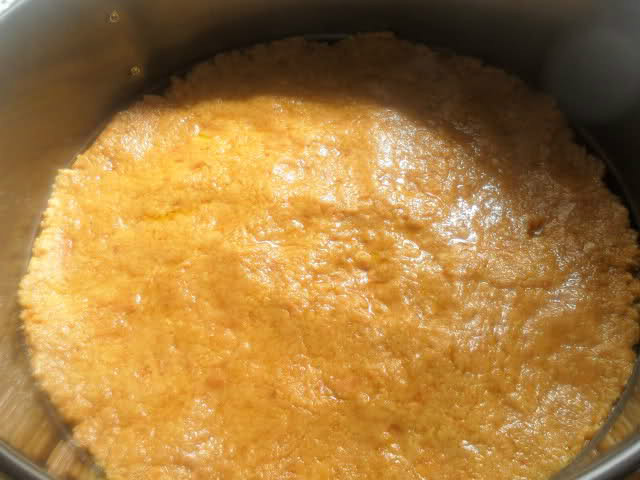 Cubrimos toda la base de la tarta con la mezcla de galletas y mantequilla, extendiendola por todas partes por igual, la metemos a la nevera mientras preparamos el relleno.
