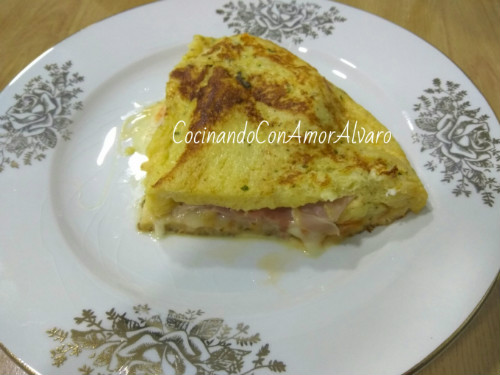 Lo volcamos a un plato, y lo introducimos al microondas como 2 minutos. Por si acaso el queso no se fundió y el huevo quedó crudo.