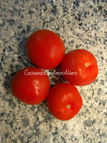 Lavamos los tomates, y los partimos en rodajas.
