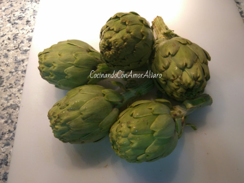 Como expliqué en el comienzo de la receta, de como limpiarlas. Las tenemos en remojo para que no se oxiden, y demientras vamos a preparar el sofrito.