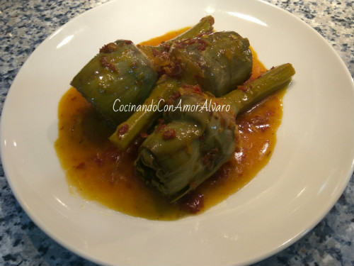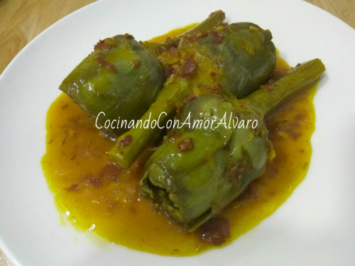 Echamos las alcachofas que teníamos en remojo, escurriendolas muy bien.